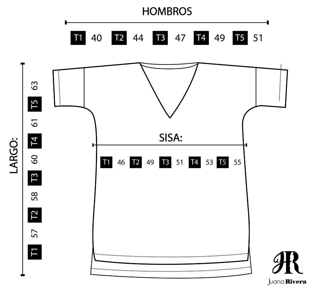 TABLA DE TALLES REMERAS JUANA RIVERA :